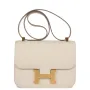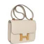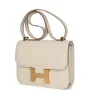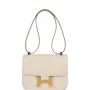This Hermes Replica Constance is in Craie epsom leather with brushed gold hardware and has tonal stitching, a metal "H" snap lock closure and adjustable shoulder strap.