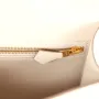 The interior is lined with Craie lambskin leather and has a zip pocket with an Hermès engraved pull, two slip pockets and a removable mirror.
