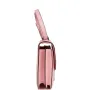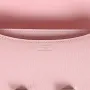 The interior is lined with Rose Sakura lambskin and has an open pocket on the front wall, a center divide, and a slit pocket on the back wall.