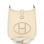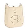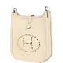 This Hermes Replica Evelyne TPM is in Nata Clemence leather with palladium hardware and features tonal stitching, large perforated H in circle (front), pull tab top closure and a Nata removable canvas and leather shoulder/crossbody strap.