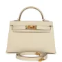 This Hermes Replica Kelly, in the Sellier style, is in Craie epsom leather with gold hardware and has tonal stitching, two straps with front toggle closure, single rolled handle and removable shoulder strap.